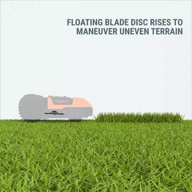 - Floating blade disc automatically lifts the blades giving Landroid more clearance to navigate uneven terrain without getting trapped or stuck.